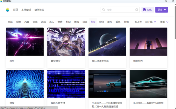 操作简单便捷:软件界面简洁明了,功能布局合理,左侧有详细的壁纸分类,还具备搜索功能,方便用户快速查找。用户一键即可预览、下载和设置壁纸,轻松完成更换操作。