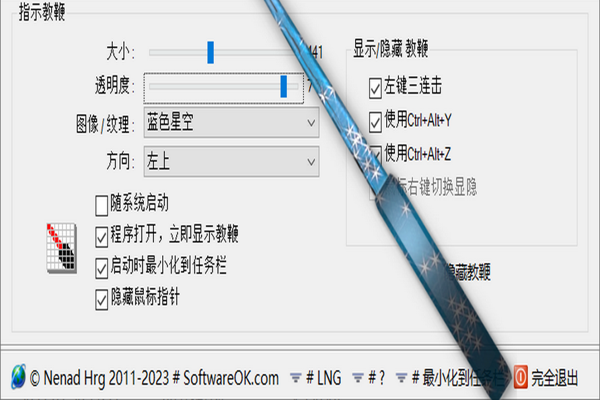 PointerStick电脑版是一款专为演讲、简报和教学设计的的鼠标指示工具,PointerStick客户端能够将鼠标游标转换为一个超大且显眼的指示棒,可以提升简报或教学的互动性,能够让演讲者在讲解时能更好地吸引观众的注意力,帮助大家集中在要点上,同时避免观众错过重要的信息。