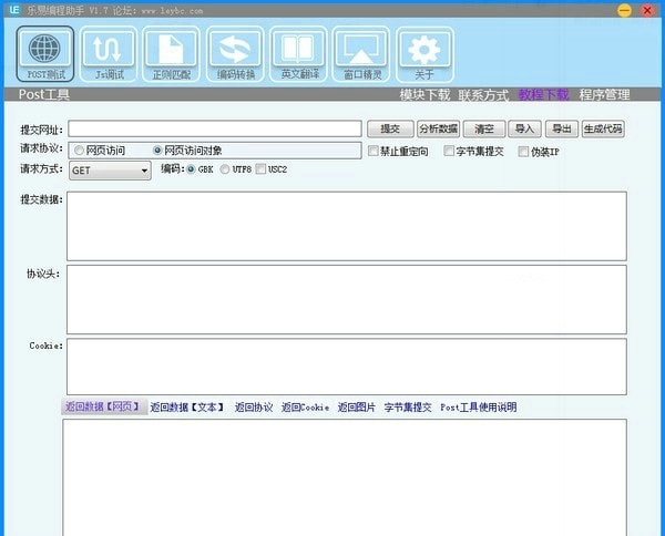全方位网络封包调试:乐易编程助手在网络测试方面堪称一绝,无论是 POST 还是 GET 客户端封包测试,它都能轻松驾驭。