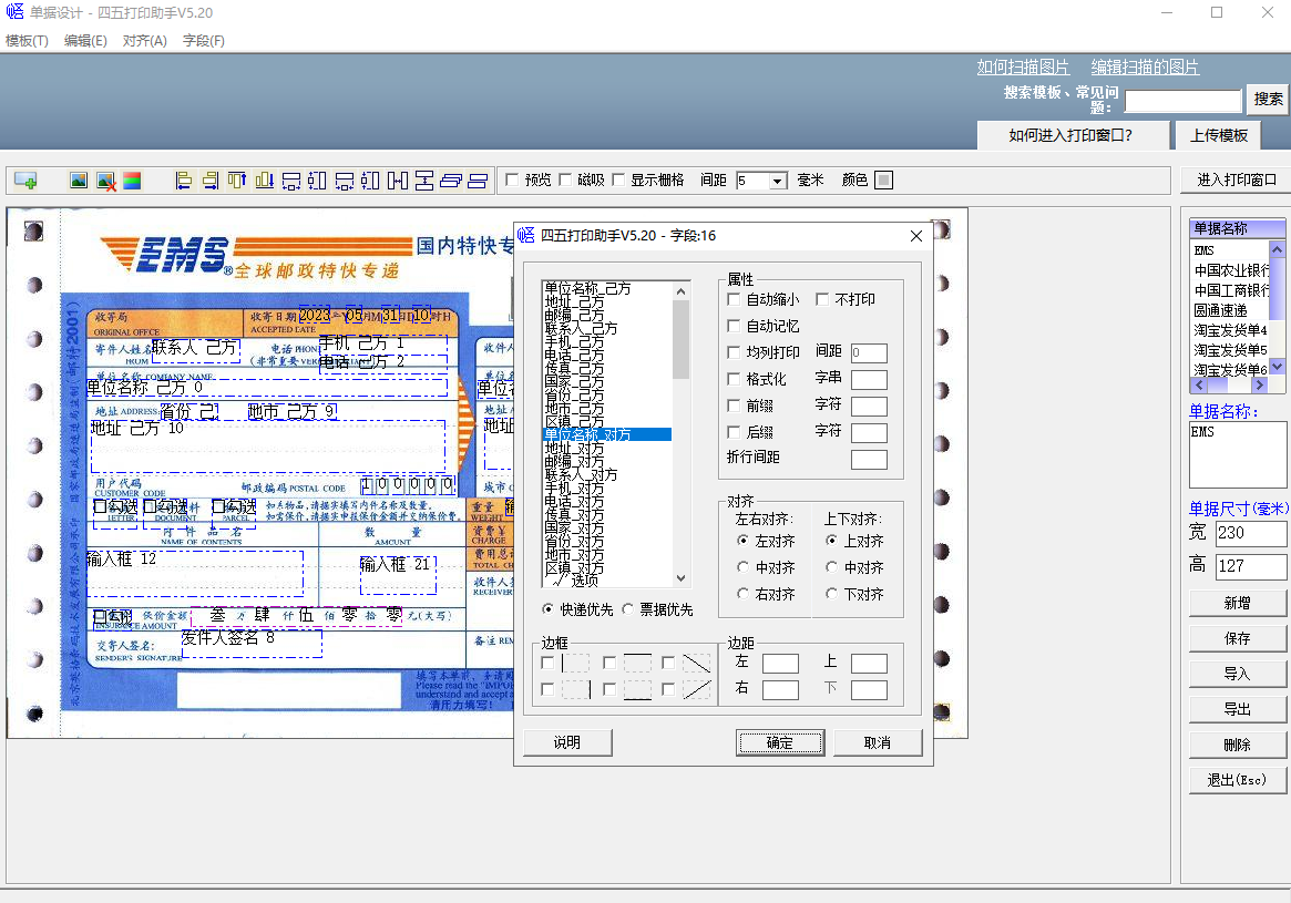 图片背景真实呈现:设计时可添加品牌、节日等图片为背景,设计界面与打印效果一致,避免反复修改,如节日促销时设节日图片为快递单背景,提升客户好感。