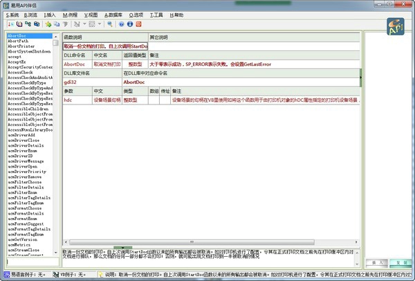 贴心的中文说明:常用函数提供中文说明,降低了用户学习和使用 API 函数的难度,即使是对英文不太熟悉的用户也能轻松理解函数的功能和用法。