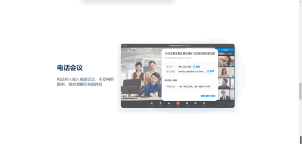 阿里云会议电脑版是一款专业的远程会议软件,阿里云会议最新版提供清晰流畅的音视频通话体验,支持高清视频、高清音质的音视频会议,可以方便地展示自己的电脑屏幕、文档、PPT等内容,进行实时展示与讲解,提升会议互动性和效率。