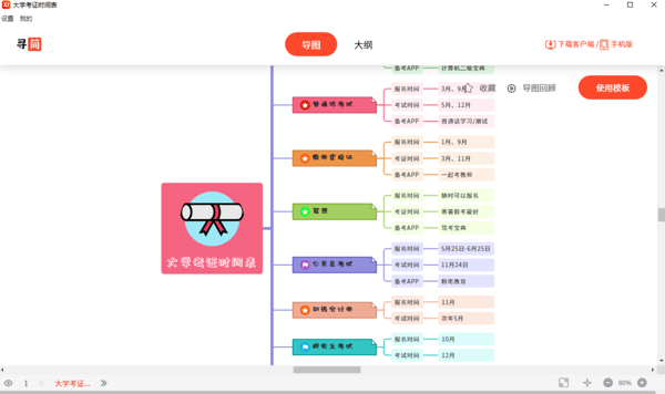 寻简思维导图软件内置了丰富多样的模板样式供用户选择使用,轻松生成创意并整理思路,有效记录和组织个人或团队的知识库,便于查找和回顾。