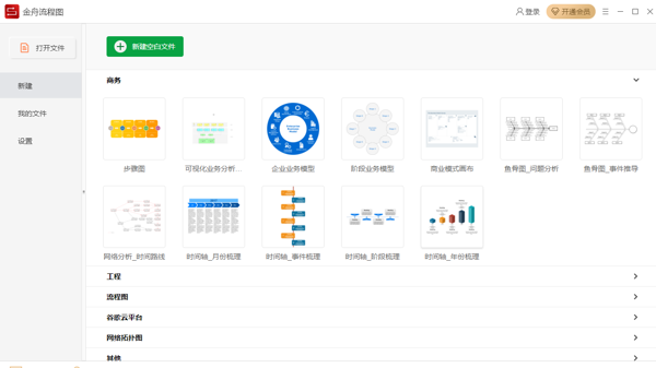 金舟流程图软件拥有极为丰富的模板资源,涵盖普通流程图、泳道图、UML 图、组织架构图等多种类型。