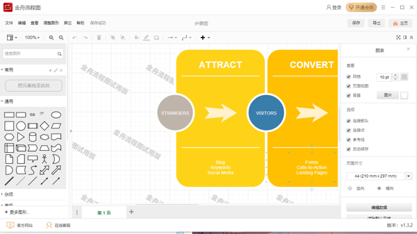金舟流程图电脑版是一款功能全面的图表制作工具,金舟流程图PC客户端提供了丰富的图形模版和预设样式,用户可以快速应用现成的设计风格,还可以自定义样式和模版,能够帮助用户快速创建符合自己需求的图表内容,灵活性非常高。