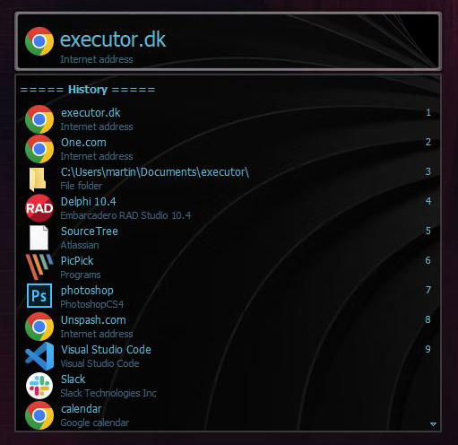 Executor是一款专用的计算机搜索工具,Executor中文版之中用户可以直接在该软件之中管理设备的运行内容,以及在该设备之中查找各类文件,在这里只需要输入关键词,该软件就可以快速搜索出设备之中整体文件。