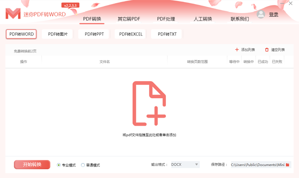 迷你PDF转WORD客户端能够提供高质量的转换效果,能够轻松满足用户的日常办公需求,还支持批量操作。