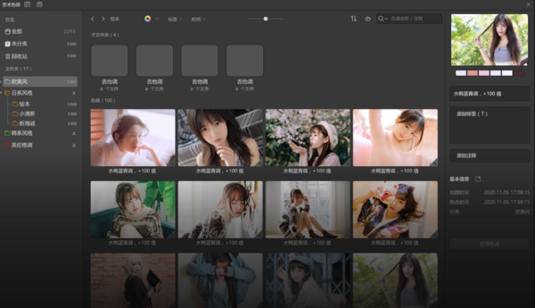 开贝修图 Max 内置了数百种流行色彩风格,同时支持导入 Camera Raw 预设、LR 预设等,充分满足用户多样化的色彩需求。