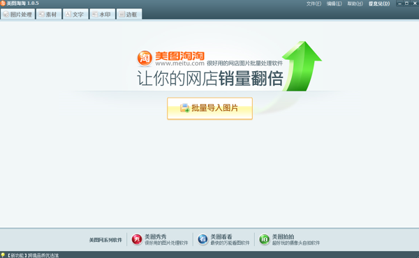 美图淘淘电脑版是一款专为你网点卖家提供的批量图片处理工具,美图淘淘PC客户端能够帮助卖家高效处理产品图片,支持为图片添加个性化元素,提升产品展示效果,方便用户轻松调整的图片的各项参数属性,帮助网点卖家快速优化商品图片。