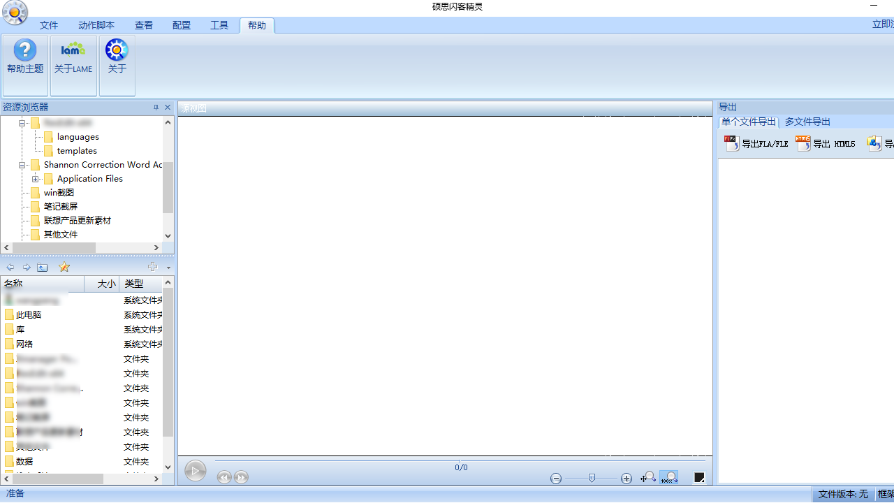 闪客精灵操作界面非常明显,所有的功能都一一排列好,在帮助用户解析 Flash 影片中的动作脚本时候可以更加简单,在生成清晰的.as 格式动作脚本之后,能让用户清楚了解 Flash 动画的构造。