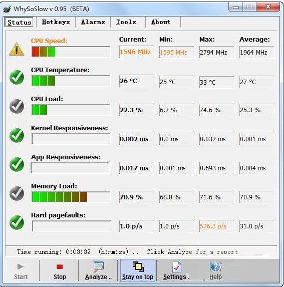 WhySoSlow电脑版是一款非常实用的系统诊断工具,WhySoSlow客户端提供全面分析电脑的硬件信息,能够帮助用户了解硬件健康状况,找出可能影响系统性能的硬件故障或不足,能够检测系统的整体健康状况,发现导致电脑变慢的潜在问题。
