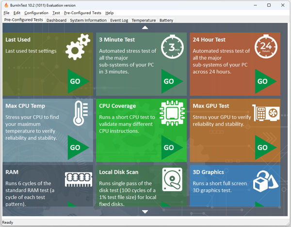BurnInTest软件是一款硬件测试工具,软件能够通过长时间内进行高负载操作来对计算机的各个硬件组件进行压力测试,让其在极限的条件下稳定运行的情况,BurnInTest电脑版提供了实时的硬件性能监测,支持生成详细的报告,轻松排查潜在的问题。