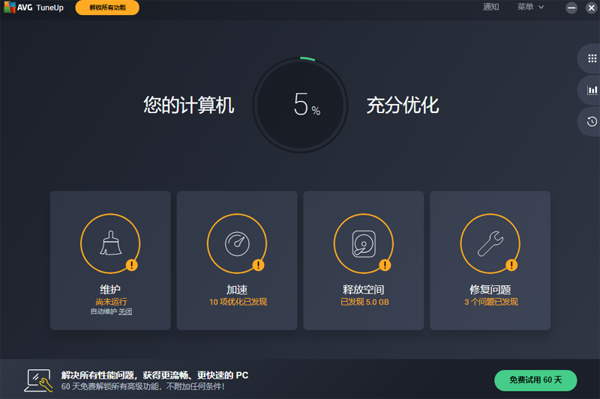 AVG TuneUp免费版是一款强大的系统优化工具,软件提供了清理、优化、修复和管理等多项功能,能够帮助用户提升计算机的性能,延长设备寿命,AVG TuneUp电脑版可以让用户设置定期运行自动维护任务,提供定期检测的系统报告,轻松了解计算机的状态。