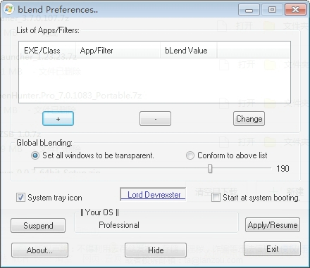 Blend电脑版是一款窗口半透明化工具,用户可以通过Blend最新PC版将文件窗口进行透明化设置,能够帮助用户轻松美化桌面环境,减少视觉干扰,支持用户调整窗口的不透明度、边框或背景透明度,可以让窗口更好的融入背景或其他窗口之中。