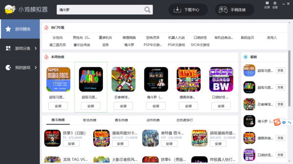 界面简洁直观:中文界面,更直观,游戏归类一目了然,特有中文游戏、汉化游戏专区,方便玩家寻找经典游戏,还有游戏专题推荐,系统整理各大经典系列作品。