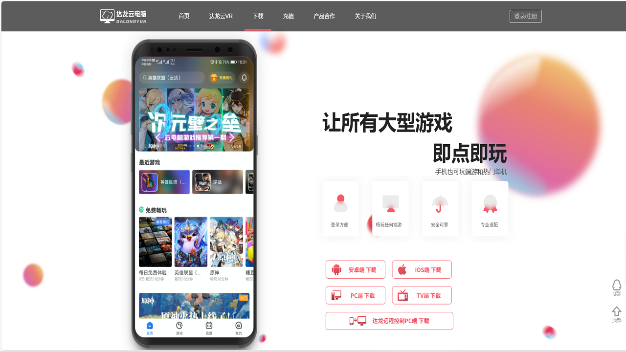 达龙云电脑有着非常强大的云启动功能,用户可以使用低端配置的电脑,实现云端畅玩3A大作,在这里还可以直接在移动办公,利用强大的服务器来进行云端渲染,让低端电脑也可以畅用高配应用。