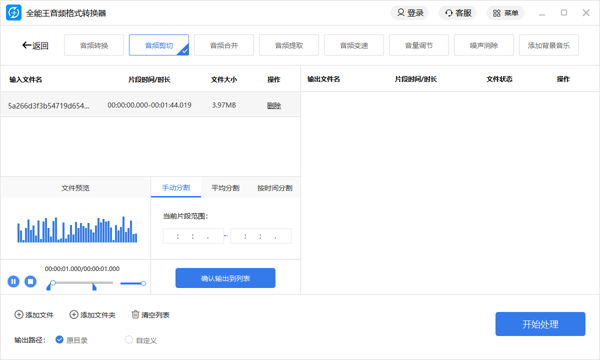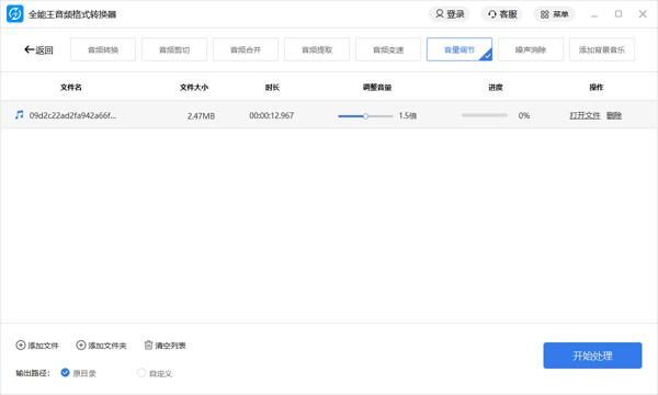 全能王音频处理大师电脑版是一款全能的音频编辑工具,全能王音频处理大师PC版支持多种音频格式的转换,方便用户在不同平台和设备间使用,提供精准的音量调整功能,让音频文件的音量达到最佳平衡,避免过高或过低的音量问题。