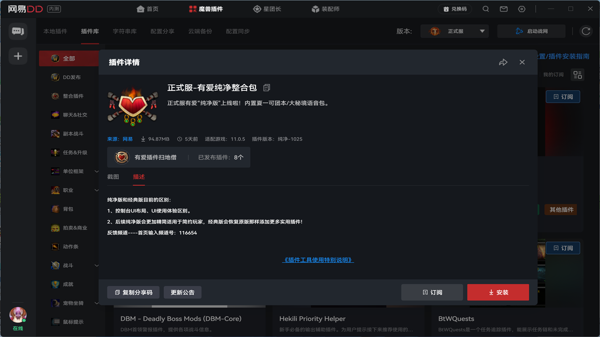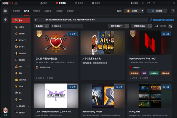 网易DD软件是一款魔兽世界插件管理工具,软件为玩家提供了一个集中管理平台,便于大家轻松体验更新各种插件功能,网易DD电脑版能够将插件按功能进行分类,我那家可以根据自己的需求进行体验,让插件管理更加清晰高效。