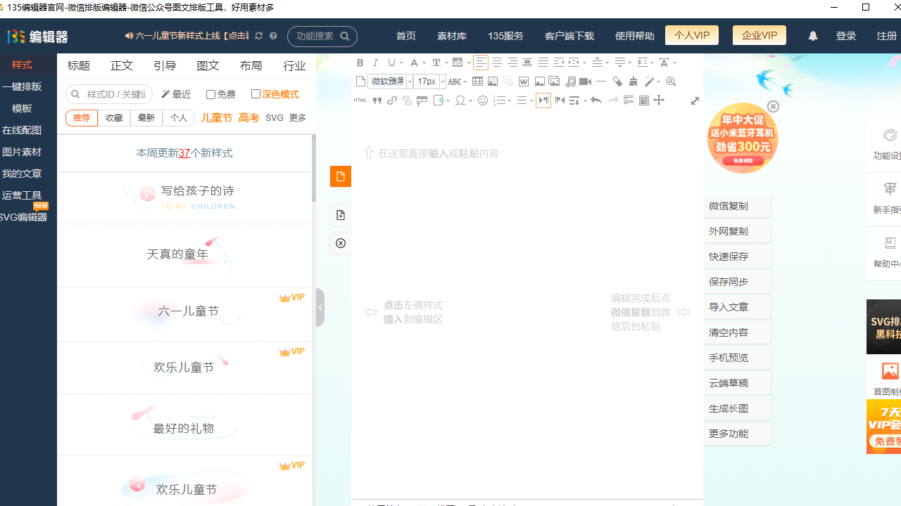 135编辑器是一款好用的微信公众号文章编辑器,135编辑器免费电脑版有着强大的编辑功能,该软件可以直接编辑好各种格模板,然后直接引入文字,也可以根据文字插入各种好用的图片,还有着检测错别字、违禁词等等重要功能,帮助用户更好的发布文字。