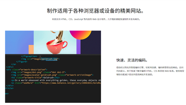Adobe Dreamweaver软件能够让用户设计自适应的网页,方便网页能够适应不同的设备和屏幕尺寸,轻松创建兼容手机平板和电脑的网页。