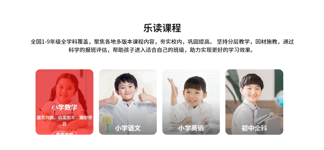 乐读包含整个中小生的知识内容,根据教育部的教材来合理的分配教育课程,在线帮助各个地区的孩子可以快乐学习,帮助用户轻松解决孩子在家没有学习方式的困扰。