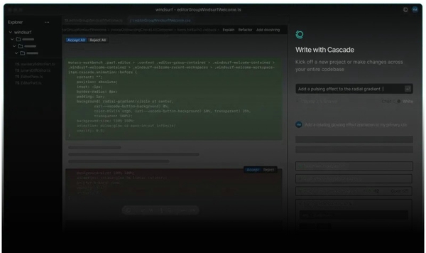 Codeium电脑版是一款基于AI智能的编程辅助工具,Codeium Windsurf最新版能够为用户轻松提升编码、调试和写作的效率,可以提供AI助力,支持即时错误检测和调试建议,开发者可以更快地识别和修复代码中的问题,减少手动调试的时间和精力。