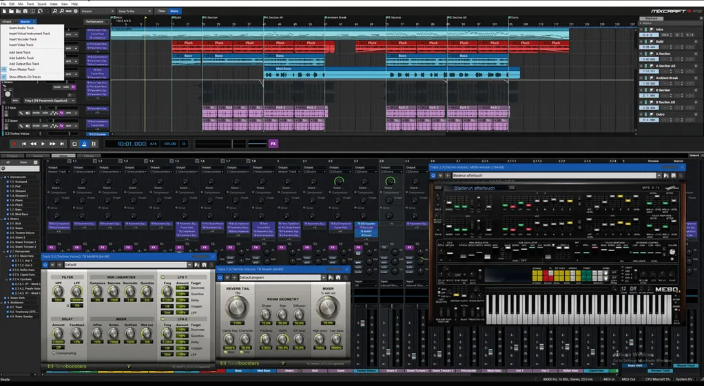 AcousticaMixcraft之中有着一套完整的音乐制作流程,只需要用户将音乐录制完毕,该软件就可以直接将音轨接入音乐之中,并且可以使用大量的工具来帮助用户完成音乐创作。