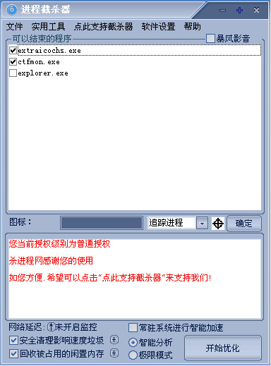 进程截杀器是一款好用的系统工具软件,进程截杀器最新版之中用户可以直接使用该工具来监控电脑的整体数据安排,在这里可以轻松判断电脑的进程之中是否有不好的软件在运行,帮助用户判断出软件是不是在影响电脑运行。