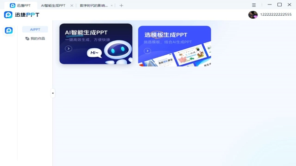 AI 智能极速创作:迅捷 PPT 依托前沿 AI 技术,具备强大的一键生成能力。用户只需输入 PPT 主题、关键词,或者简要描述内容,软件就能迅速生成一套完整 PPT。
