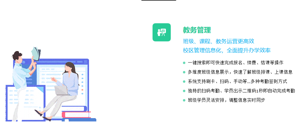 面向艺术、体育、音乐、舞蹈、早教、职业技能等多类型培训机构,提供适配性强的管理方案。