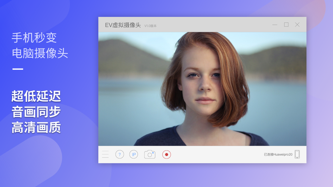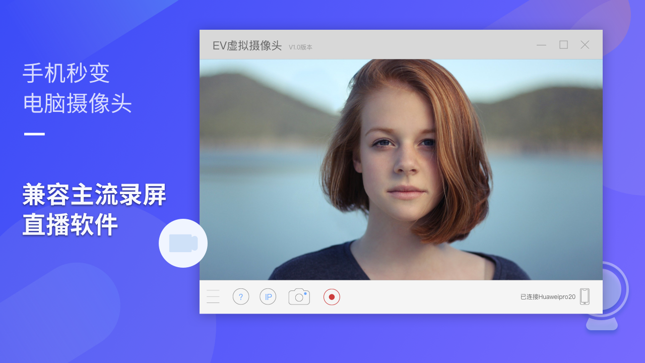ev虚拟摄像头是一款很好用的虚拟摄像头软件,ev虚拟摄像头电脑版之中用户可以使用该软件来充当电脑的摄像头,该软件连接手机之后,可以直接将手机摄像头摄像的内容显示在电脑之中,从而轻松的解决电脑没有自带摄像头。