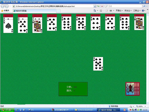 操作规则中,移牌是关键玩法。玩家可通过鼠标拖动,将单张或一组牌移动至其他牌上方或空牌叠处。移动时需遵循严格要求,牌只能放置在一叠牌全部移除后的空白位置,或者比其最底层牌大 1 点的牌之上。而且,只有整组牌花色完全一致时,才能够整体移动,若花色不同,则仅能移动该组最上方的一张牌,或同一花色的多张牌。当成功移动形成同一花色、从 K 到 A 顺序排列的一组牌时,这组牌会自动移除并整理到左下方,玩家也会随之获得相应的分数奖励。
