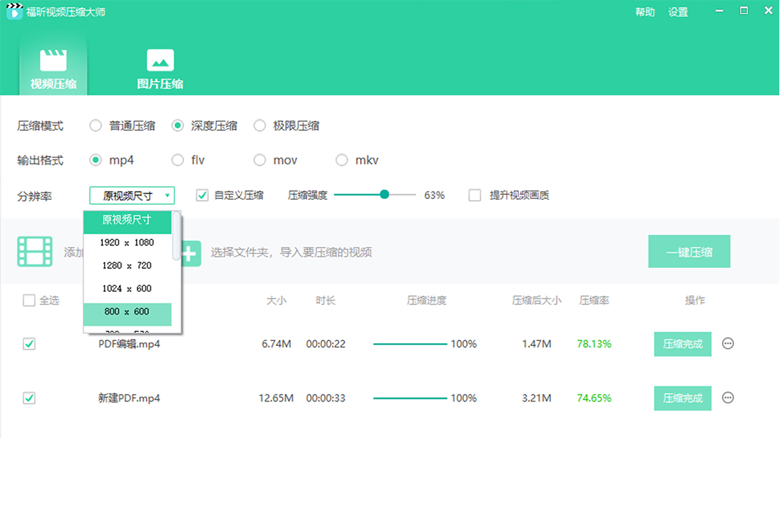 视频压缩器有着非常强大的视频文件压缩功能,该软件支持多个视频文件格式,只需要导入文件到软件之中,就可以快速进行压缩,并且根据文件格式的来智能压缩至推荐的画质,让文件变小,但是文件的清晰度处于可以接受的程度。