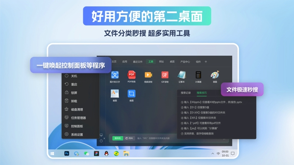 自动整理与分类:能够自动将快捷方式和图标放置在桌面上可调整大小的阴影区域,还能自动将新图标按照设定规则进行整理分类。用户也可以创建标签,自定义文件分类,实现个性化的桌面管理。