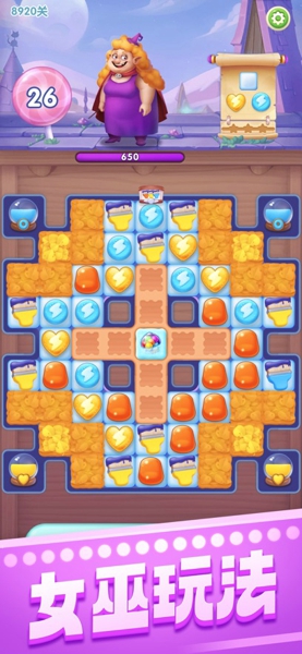 经典三消玩法创新:在传统三消基础上,游戏有超 60 个有趣的棋子玩法。每当有糖果被消除时,周围糖果能得到加成,还有特殊消除方式,如四同色、五同色、十字和 L 型消除等。