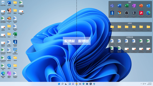 可在桌面创建不同类型的分区 “栅栏”,将快捷方式、图标、文件夹等自动分类放置其中,新图标和文件也会自动跳入相应分区,让桌面整洁有序。