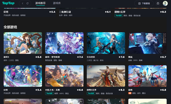TapTap电脑版是一款专为电脑用户提供的移动游戏和应用平台,TapTap最新2025客户端提供了大量的正版手游资源,用户可以轻松浏览、下载和安装各种热门游戏,平台涵盖了多种类型,支持推荐相似或新推出的游戏,帮助玩家发现新的兴趣点,并随时保持对最新热门游戏的了解。