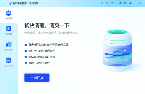 深度清理与空间释放:一键扫描系统垃圾、隐私痕迹,支持 C 盘深度清理与软件搬家,针对性解决系统盘爆满问题。